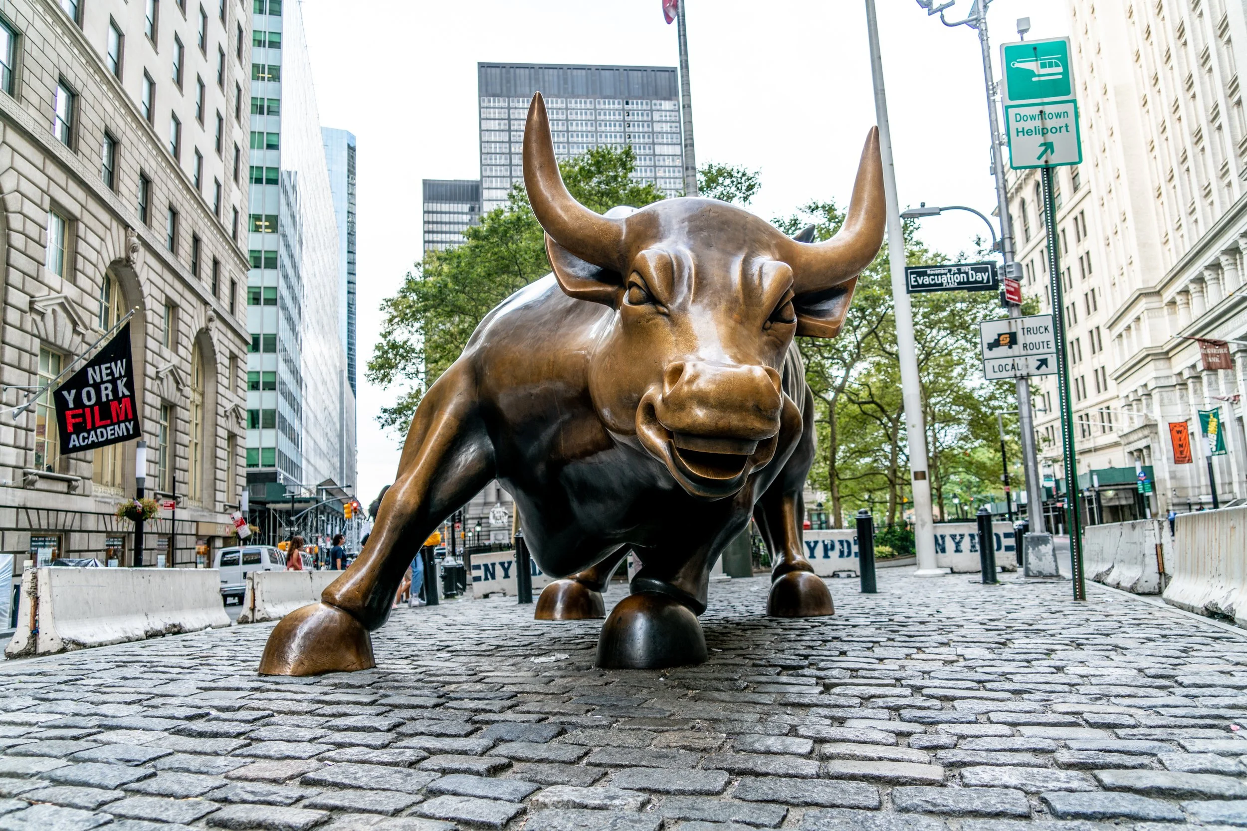 "Fearless Girl" Bronze statue with New York Stock Exchange