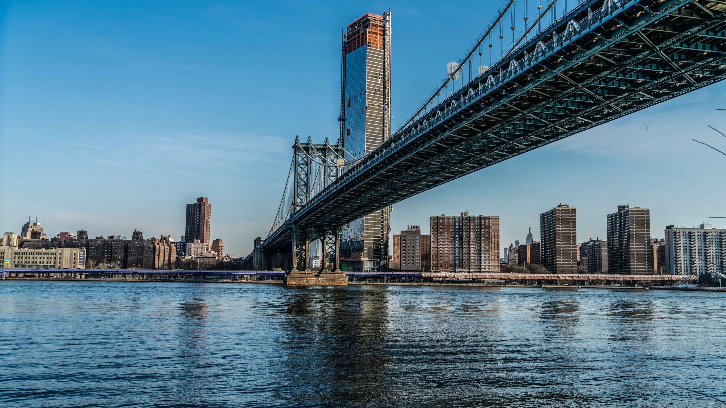 The Manhattan Bridge stretching across the East River, connecting lower Manhattan at Canal Street